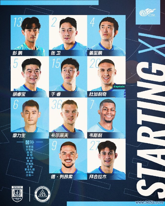 13-彭鹏(GK) 2-张卫 4-姜至鹏 5-胡睿宝 6-廖力生 7-韦斯利 9-德·列昂索 15-于睿 20-杜加利奇(C) 27-拜合拉木·阿卜杜外力 36-卡尔采夫