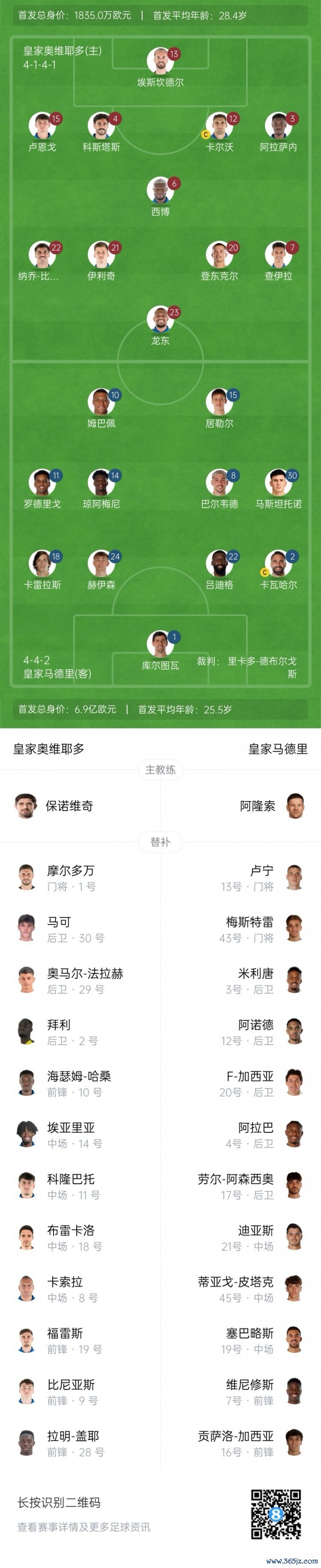 皇马上轮1-0战胜奥萨苏纳欧冠简称,足球资讯皇家奥维耶多上轮0-2不敌比利亚雷亚尔。