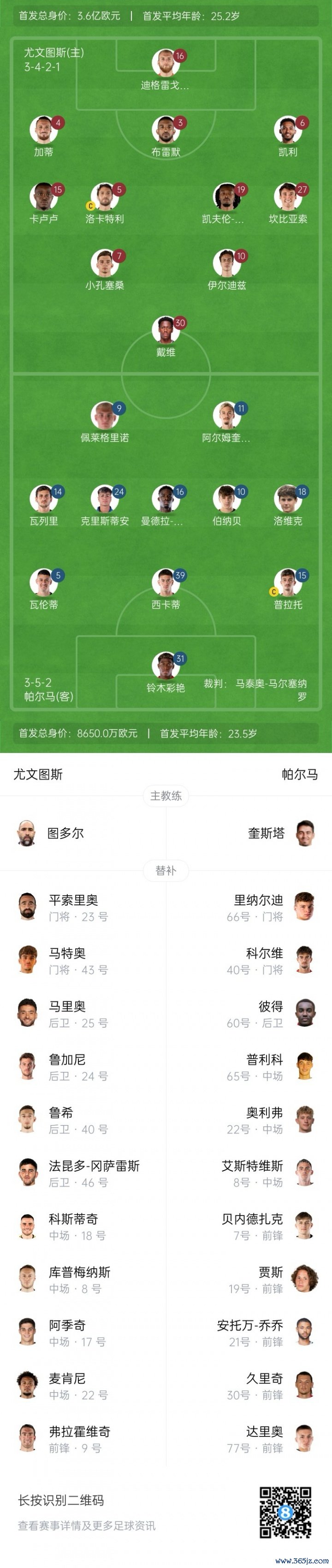 尤文vs帕尔马杆位:伊尔迪兹、戴维、孔塞桑出战