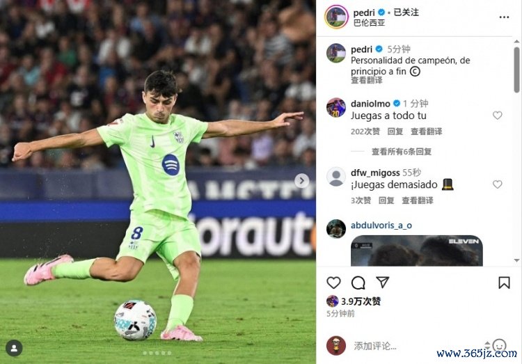 佩德里ins晒赛场照:从开始到结束,第一名 的心态
