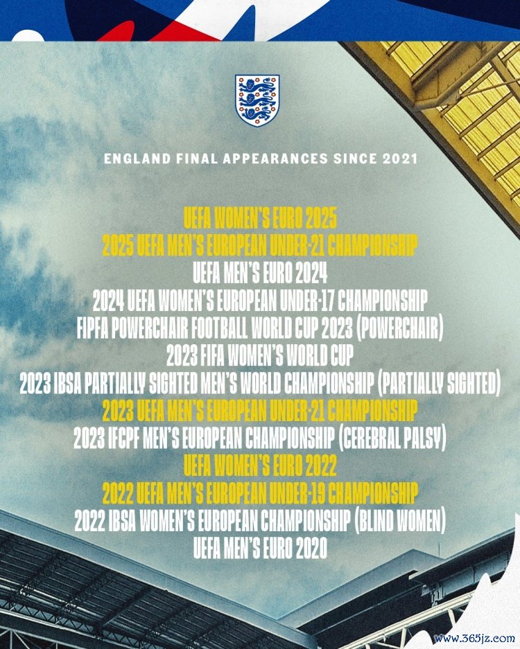 英格兰队晒各级国家队近5年成绩:13次进入各赛事总决赛 ,5次夺魁