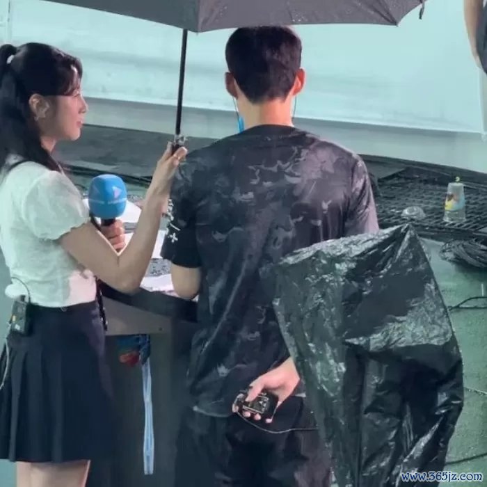 随着争议蔓延, 西甲有网友拍到另一个角度的现场照片。照片中孙兴慜右手也拿着麦克风,因此无法撑伞。