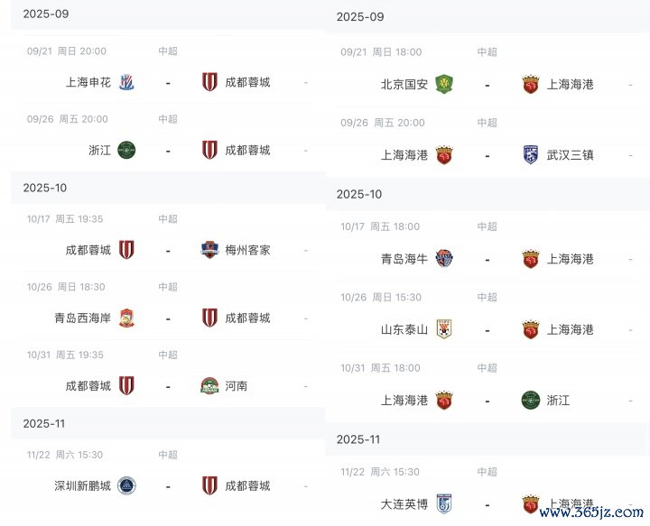 谁的赛程更好?中超仅剩6轮,蓉城申花,国安海港下轮直接对话