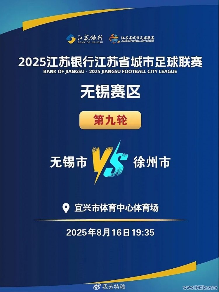 2025江苏省城市古代足球 职业联赛 第九轮赛事 ,徐州队客场应战 对战无锡队将于8月16日19:35在宜兴市体育中心运动场 开赛,徐州多个景点景区在规定时间段,对无锡市民有优惠。