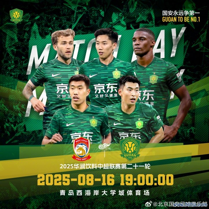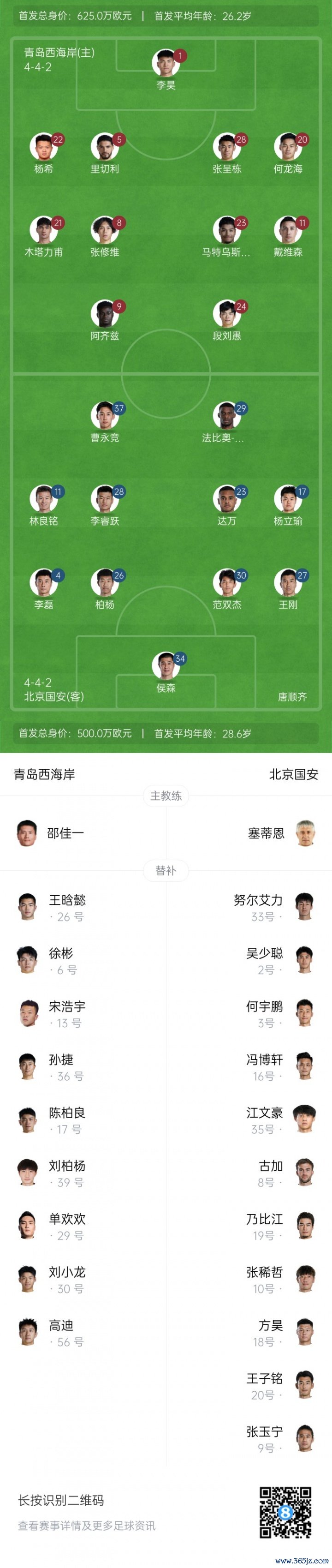 08月16日讯 北京时间19点,中超第21轮,青岛西海岸vs北京国安欧冠直播,双方杆位公布。