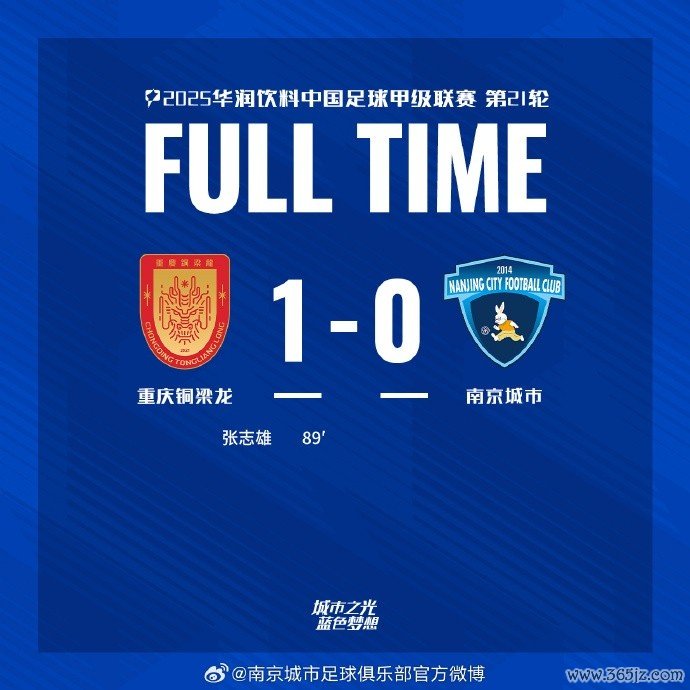 全场赛事 结束,南京城市客场应战 0:1负于重庆铜梁龙