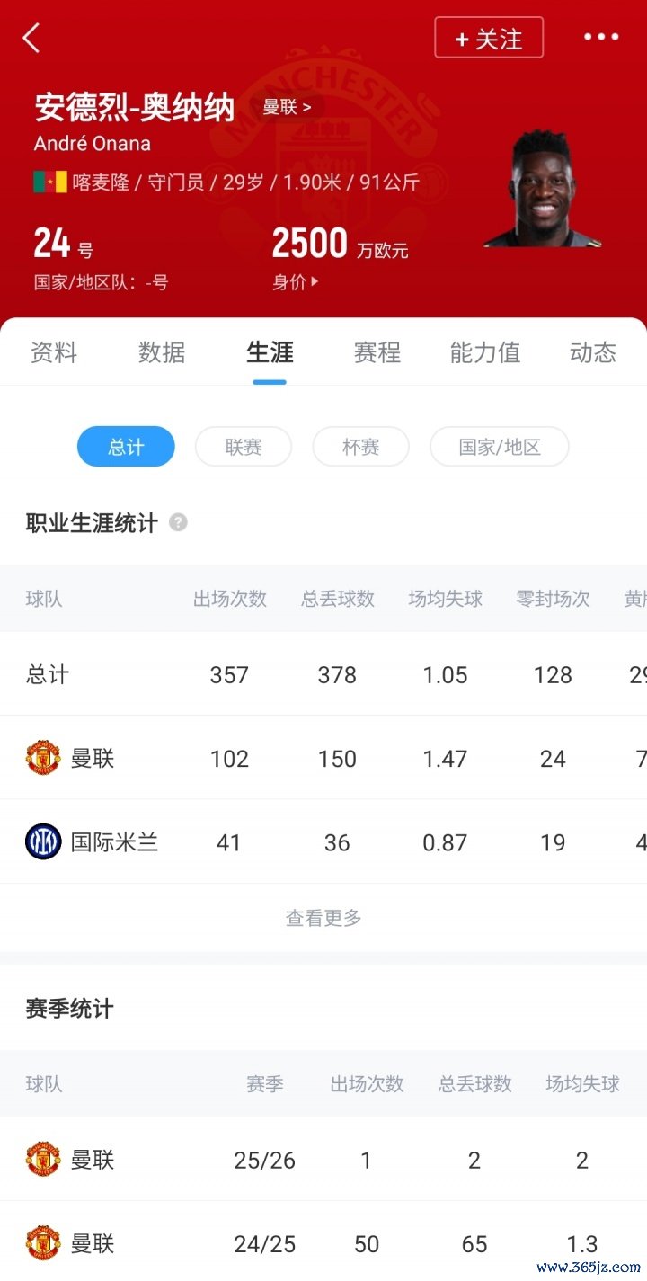 曼联2023年花费5020万欧转会费从国米签下奥纳纳, 西甲截止目前球员代表曼联出战102场赛事 ,丢掉150球,完成24次零封。球员德回转 价2500万欧。
