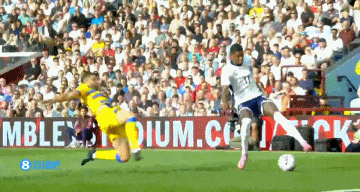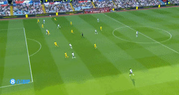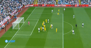 第39分钟,英格兰右侧危险区域 45°起球传中,凯恩顶球攻门顶高。↓