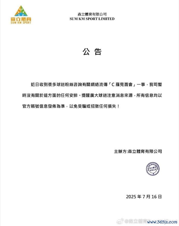 主办方否认C罗见面会:暂时没有任何安排,广大球迷注意消息来源