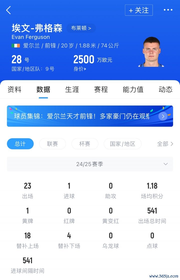 弗格森时年20岁。他于2022年11月首次代表爱尔兰国家队出场,迄今为止在18次出场中打入4球。他在俱乐部和国家队层面总计出场103次,打入21球。目前其德回转 价已达2500万欧元。