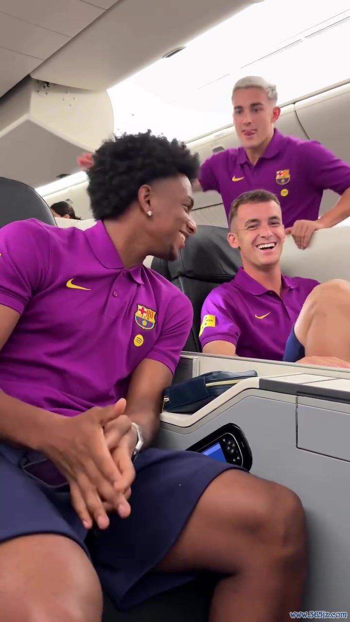 7月25日讯 巴萨官方更新社媒动态,晒出球员们在飞机内的视频。