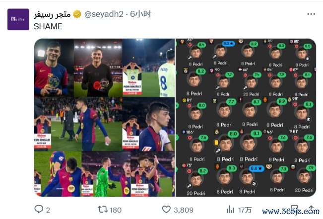 球迷晒出佩德里表现、媒体评分合集图并写道:耻辱