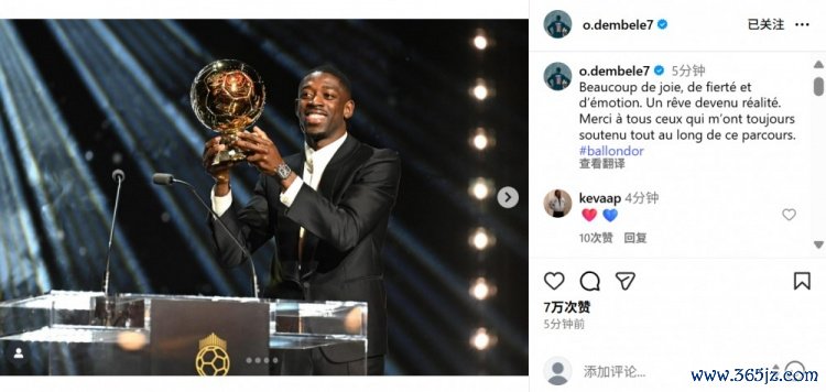 登贝莱在个人社媒也晒出手捧奖杯的照片中超联赛直播在线观看免费,足球资讯配文写道:“这一刻情绪万千, 吹响体育集结号英超NBA直播无比开心与骄傲。我的一个理想 实现了, 西甲感谢一路走来一直支持我的所有人!”