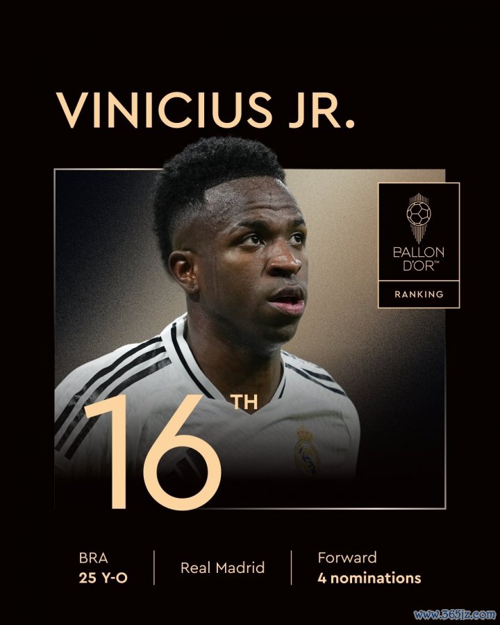 9月23日讯 2025年金球奖排名公布,维尼修斯最终排名第16。