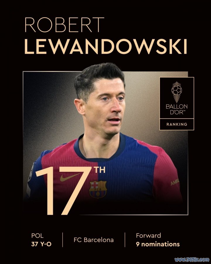 9月23日讯 2025年金球奖排名陆续公布,巴萨前场球员莱万获得第17名,足球资讯生涯第九次提名。