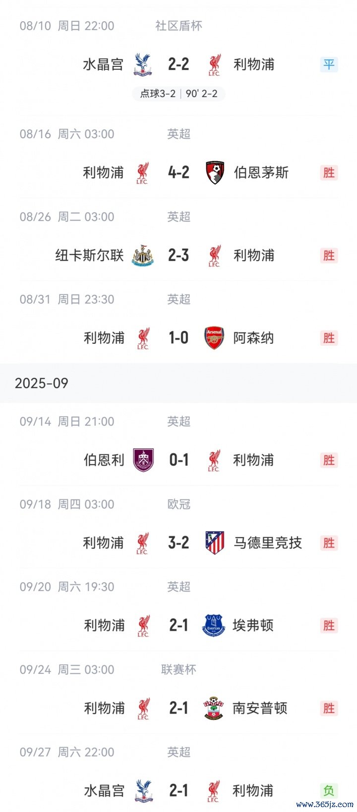 本赛季利物浦在各条战线上高歌猛进, 吹响体育集结号英超足球直播职业联赛 、欧冠、职业联赛 杯一直连胜, 西甲而本赛季唯一两场败仗全拜水晶宫所赐。
