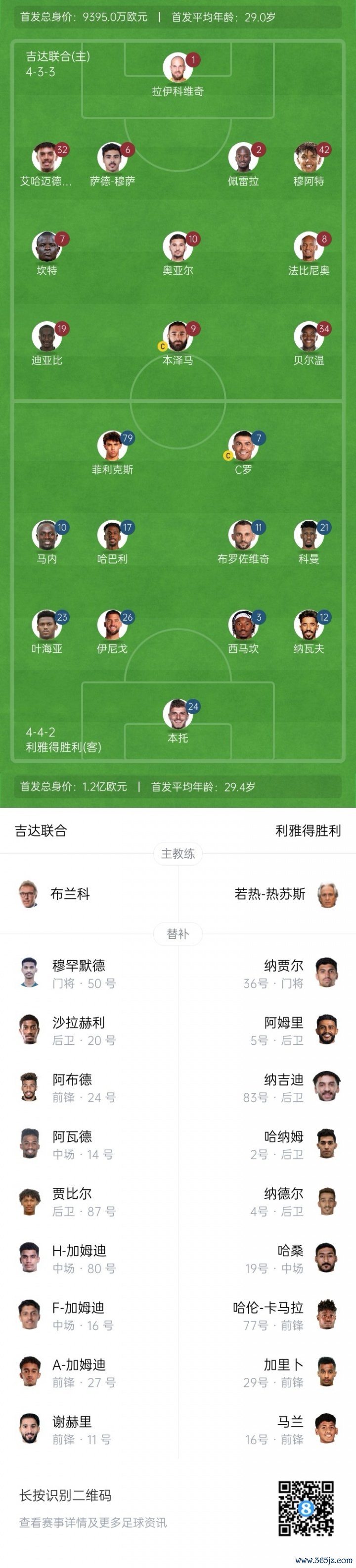 吉达联合vs获胜 杆位:C罗PK本泽马,菲利克斯、科曼、坎特出战