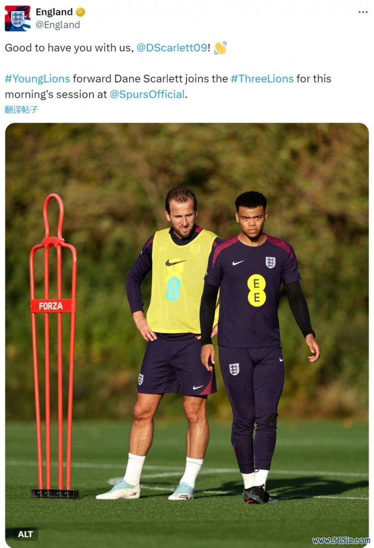 英格兰队官方确认,足球资讯英超直播英格兰青年队球员、热刺21岁前场球员斯卡列特参加球队今天上午的练习 。