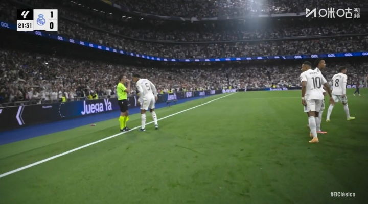 10月26日讯 西甲第10轮,皇马vs巴萨,赛事 第22分钟,足球资讯贝林厄姆直塞, 吹响体育集结号英超足球直播姆巴佩单刀赴会破门, 西甲得分 后贝林厄姆找到助理裁判说了些什么,助理裁判则回应了“🤏”手势。
