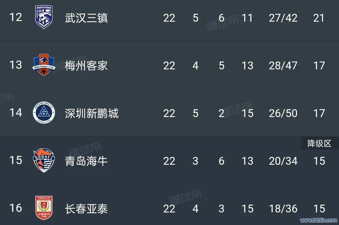 这一场输球,让武汉三镇的保级形势立马焦灼 了起来!