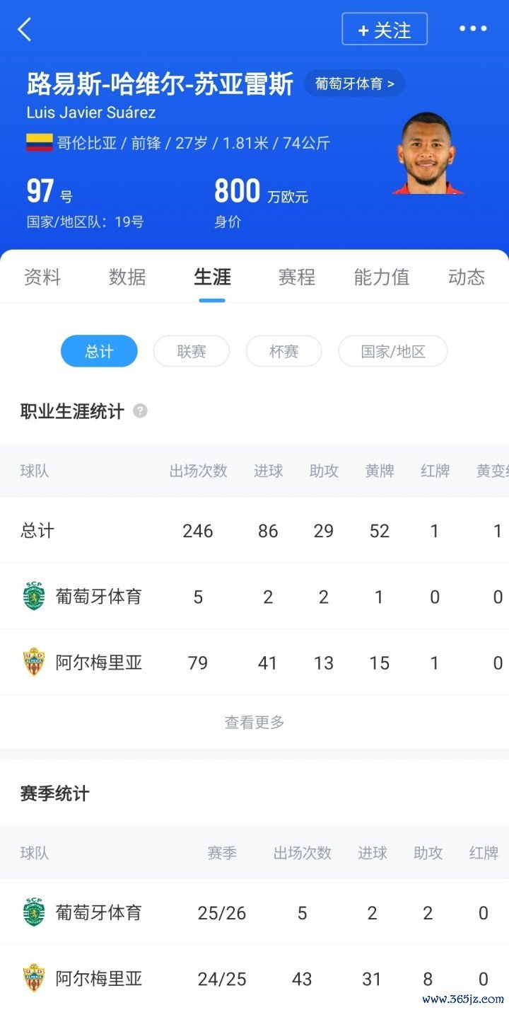 上赛季苏亚雷斯效力于西乙阿尔梅里亚, 吹响体育集结号英超出战43场赛事 , 西甲体育直播贡献31球8助,斩获西乙金靴。