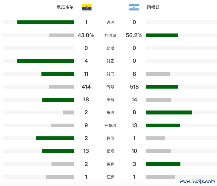 在北京时间9月10日结束的世预赛南美区末轮一场焦点战中,世界排名第1的阿根廷队在客场应战 0-1不敌厄瓜多尔。本场梅西缺阵,上半场,大马丁扑单刀赴会今晚中国队足球直播,奥塔门迪直红被罚下,塔利亚菲科送点,瓦伦西亚点射破门。下半场,凯塞多同样被罚下。全场赛事 ,阿根廷0射正。