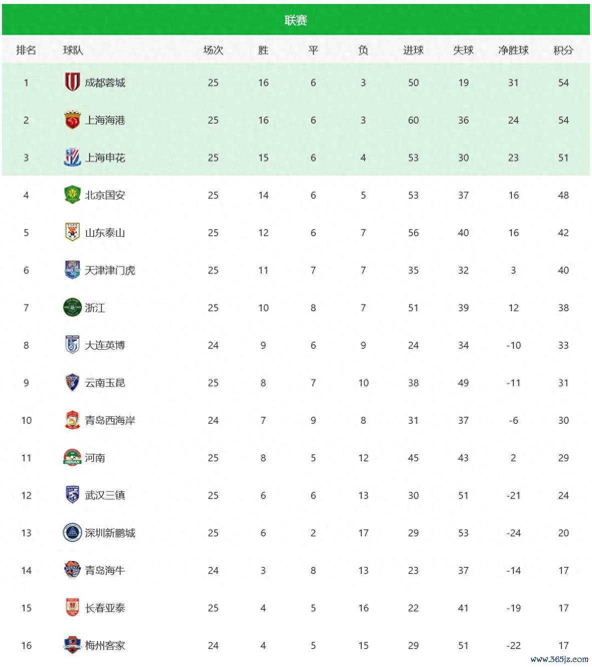 本轮迎来2场争冠大战,成都蓉城队客场应战 绝平上海申花,而北京国安主场作战 不敌上海海港。本轮过后,成都蓉城、上海海港同积54分,目前成都蓉城继续领跑积分榜,且对上海海港拥有相互战绩优势,因而成都蓉城掌握着争冠主动权。