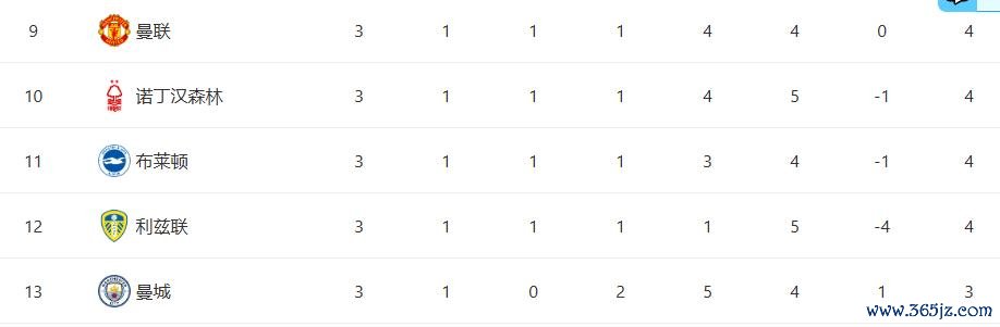 新赛季开始之后,曼城依旧没有摆脱上赛季的低迷竞技状态 ,前面3轮英超过后,他们1胜2负,积3分,仅仅排在英超积分榜的第13位,收获瓜帅执教曼城以来的最差开局,都渐渐要沦为英超的保级球队。而同城对手曼联,虽然战绩也不理想,但却比曼城要略强一些,前面3轮过后,他们1胜1平1负,积4分, 西甲暂时排在英超积分榜的第9位。