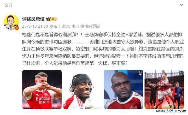 “枪迷们是不是看得心潮澎湃?!”当终场哨响、酋长运动活动 场 比分牌定格在3-0今日足球赛,詹俊的这条社媒被瞬间顶爆热搜。评论区里最高赞的留言只有一句话——“给棍哥排队道歉!”没错,就是那个夏窗5200万英镑加盟、还没首秀就被网暴到关评论的马杜埃克。