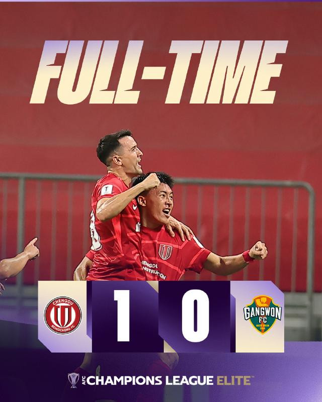 成都蓉城本轮1比0小胜江原FC队。