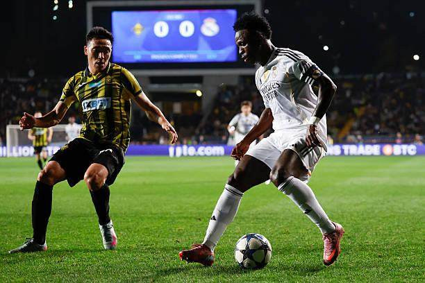 下半场姆巴佩接库尔图瓦后场长传,仰仗速度杀入危险区域 破门,为皇马扩大比分。虽然胜局无忧,但相比同一天客场应战 面对帕福斯半场打入4球的拜仁,以及主场作战 碾压法兰克福半场3球遥遥领跑 的马竞,皇马仅靠一粒十二码球和一次快攻才两球领跑 欧冠新军凯拉特,多少有些说不过去。何况在场面上,皇马也并没有完全压制住对手,楚阿梅尼和塞瓦略斯的中场球员组合多次轻易被对手断下球权,后者下半场危险区域 内一次不必要的出脚动作差点被判极刑,幸好在VAR的介入下十二码球被取消。