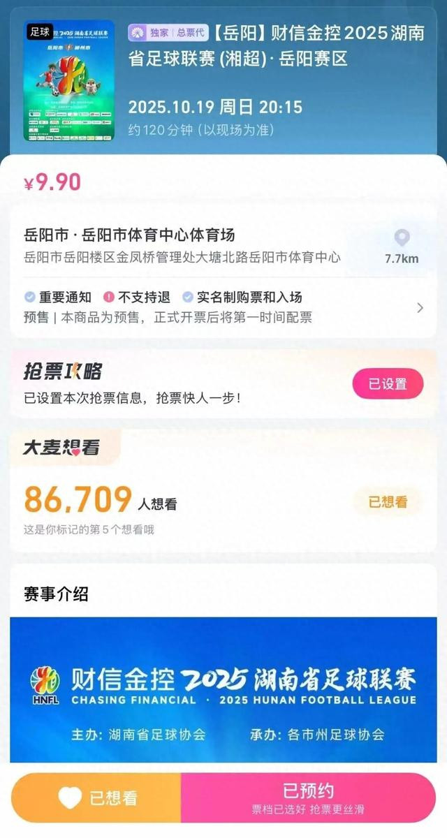 大麦l演唱会话剧音乐赛事 门票,[岳阳]财信金控2025湖南省古代足球 职业联赛 (湘超)·岳阳赛区