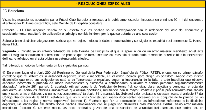 而委员会驳回上诉的核心原因在于,巴萨未能提供无可辩驳的证据来证明裁判 报告中存在“明显的实质性错误”。纪律委员会强调,裁判 报告在体育纪律仲裁中具有近乎绝对的权威性和真实性推定,只有在极其特殊的情况下才能被推翻。