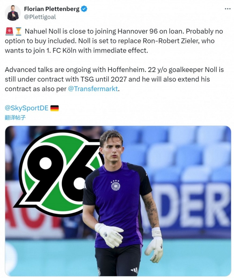 德天空: 霍村守门员诺尔接近租借加盟汉诺威, 可能不含买断条款